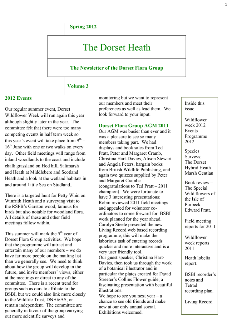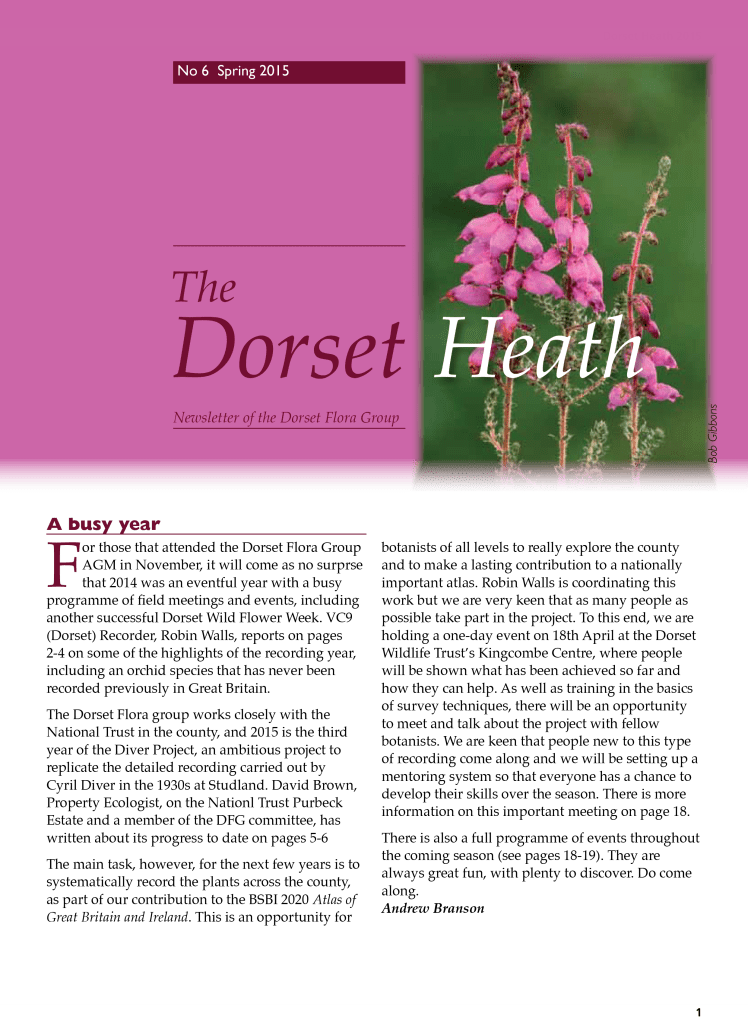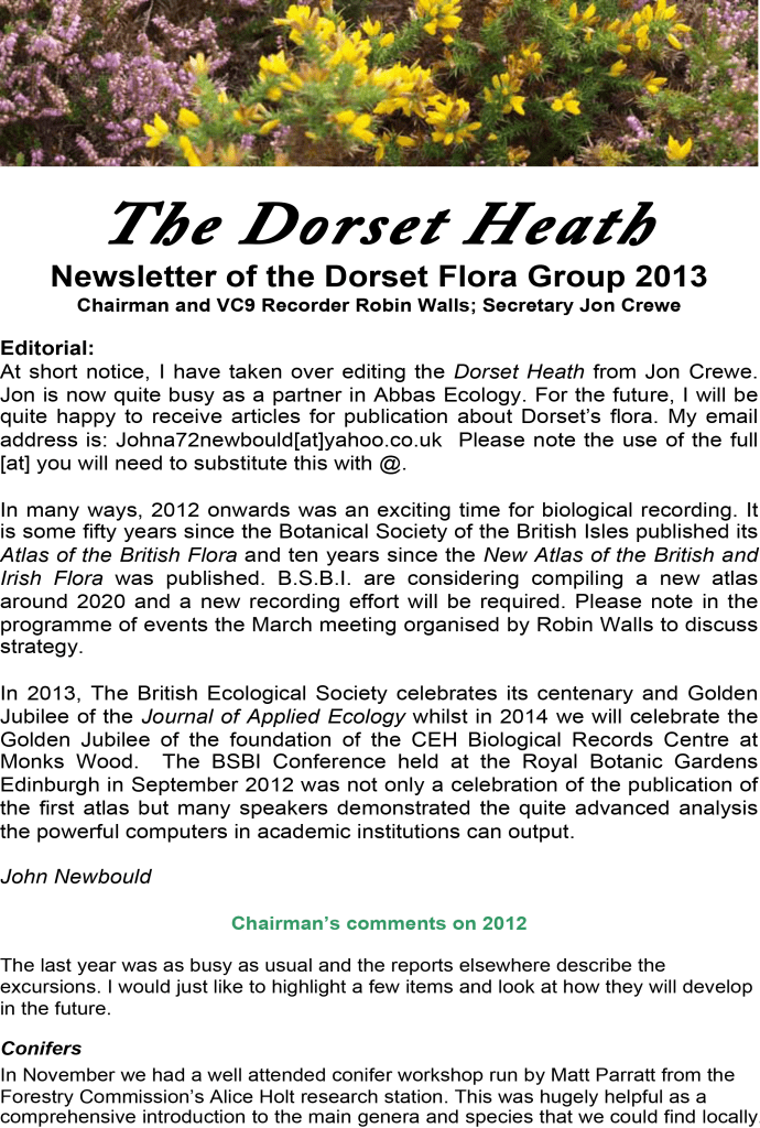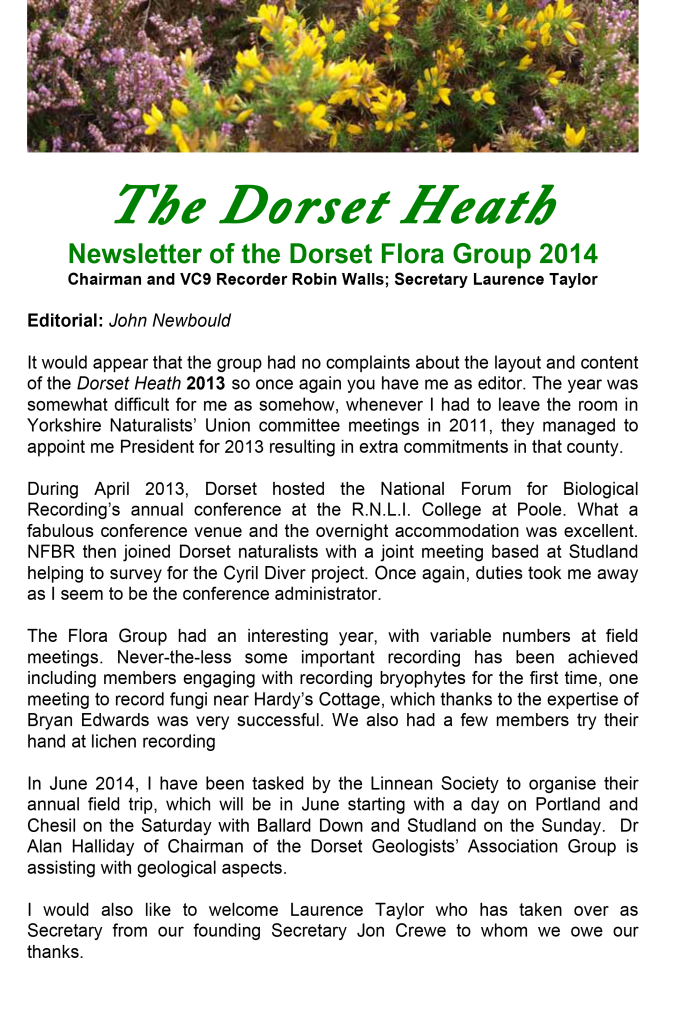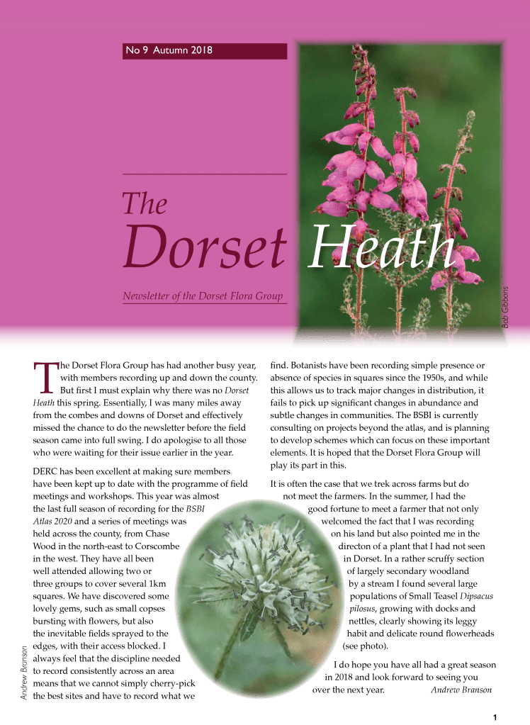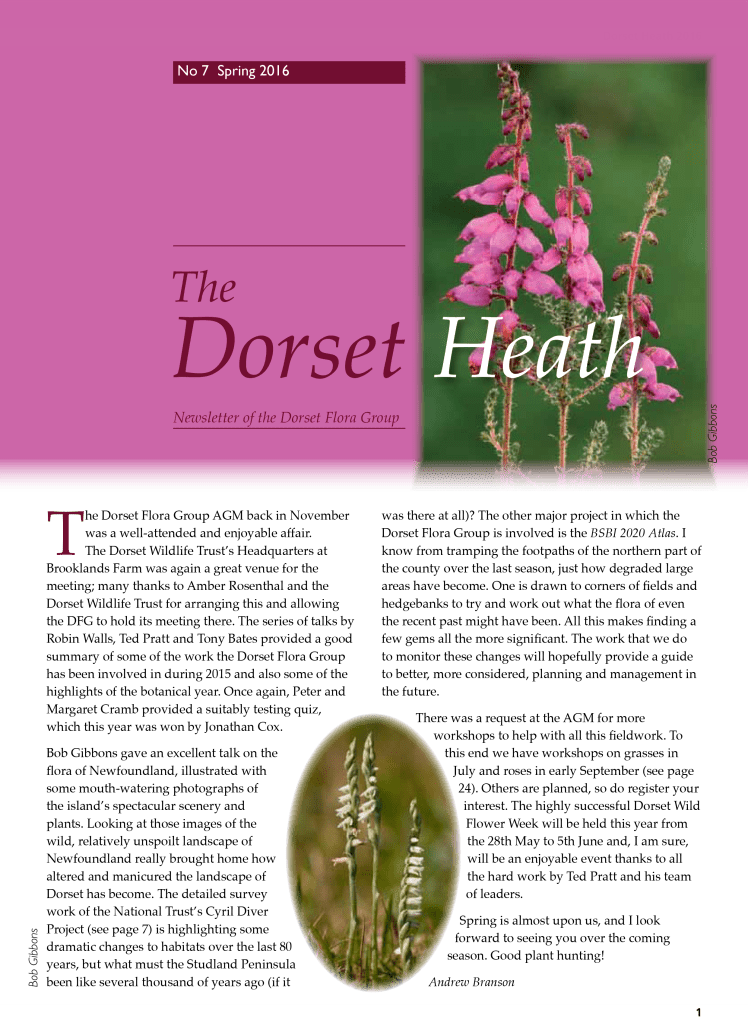 Instead of producing a newsletter-style document at irregular intervals of a year or more, the DFG Committee agreed in 2022 to release subsequent articles for The Dorset Heath as an online blog. The content is more or less the same but articles are published more frequently, as and when they are received. Recent emphasis has been on expanded meeting reports but all members of the DFG – and anyone else for that matter – are encouraged to submit contributions to the editor for publication. These can be anything from a short note or tip to a full-blown review article, so if you have botanical content that you would like to see published, please contact the editor via the blog website.